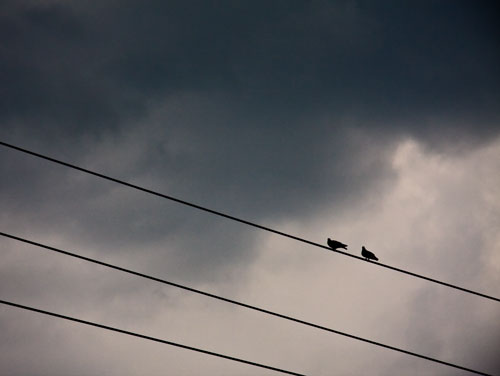 The clouds go dark in the early evening, the wind whips up to as much as 50 or 60 miles an hour and a deluge starts with lightning and thunder accompaniment. After a few minutes the wind dies down and the rain stops. The thunder rolls into the distance. It’s all quite dramatic. Too dramatic for the dogs:
