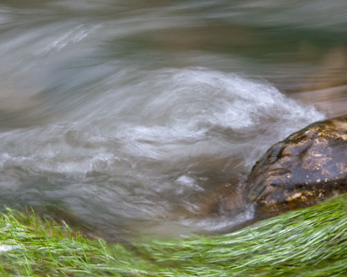 It’s surprising what lengthening out the exposure does for images of flowing water. The image above was about .3 sec. in duration. If you had walked past the stream you probably would have done just that, walked past. Human vision is fast enough that you would not have seen the silky effect a camera can show.